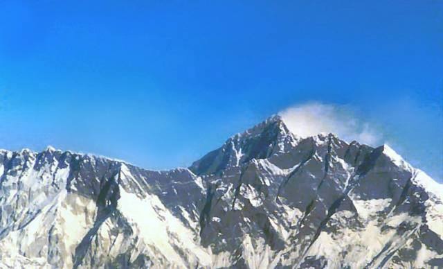 The airplane bobbed up and down upon the varying air currents outside. Soon, Everest came into view, with a wisp of cloud wrapped around its peak. Unfortunately, the windows in the passengers’ cabin were tinted brown, so the natural colour of the surroundings were hard to perceive. However, the captain allowed us to file into the cockpit individually, where we were permitted to take photographs through clear glass.