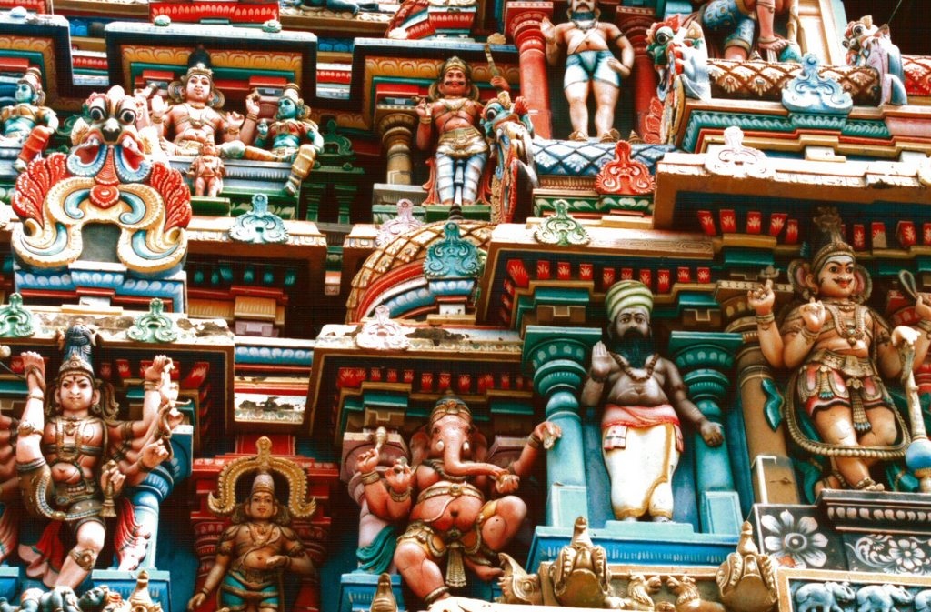 In the southern Indian state of Tamil Nadu is the bustling, crowded city of Madurai. Within it, is one of Asia’s great wonders, the Meenakshi Temple. Dominating the city’s skyline, 12 gopurams (temple towers) burst out towards the skies, engraved with thousands upon thousands of colourful images of Hindu gods and scenes. The temple is devoted to the god, Shiva.