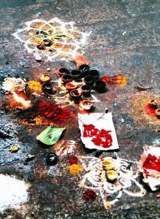 Within the walls of the complex are many small temples, where offerings of oil, incense, colourful powders, candles and flowers are placed.
