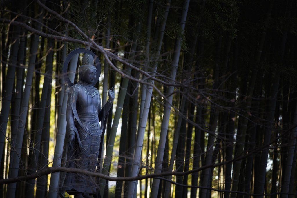 I took several images of this beautiful statue of the Bodhisattva Kannon (Avalokiteśvara) at a temple near my home, during Summer, Autumn, Winter and Spring.